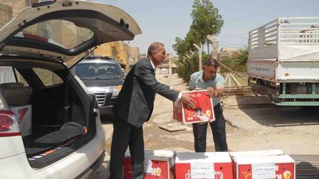 العمل توزع منتجات ورشها بين النازحين