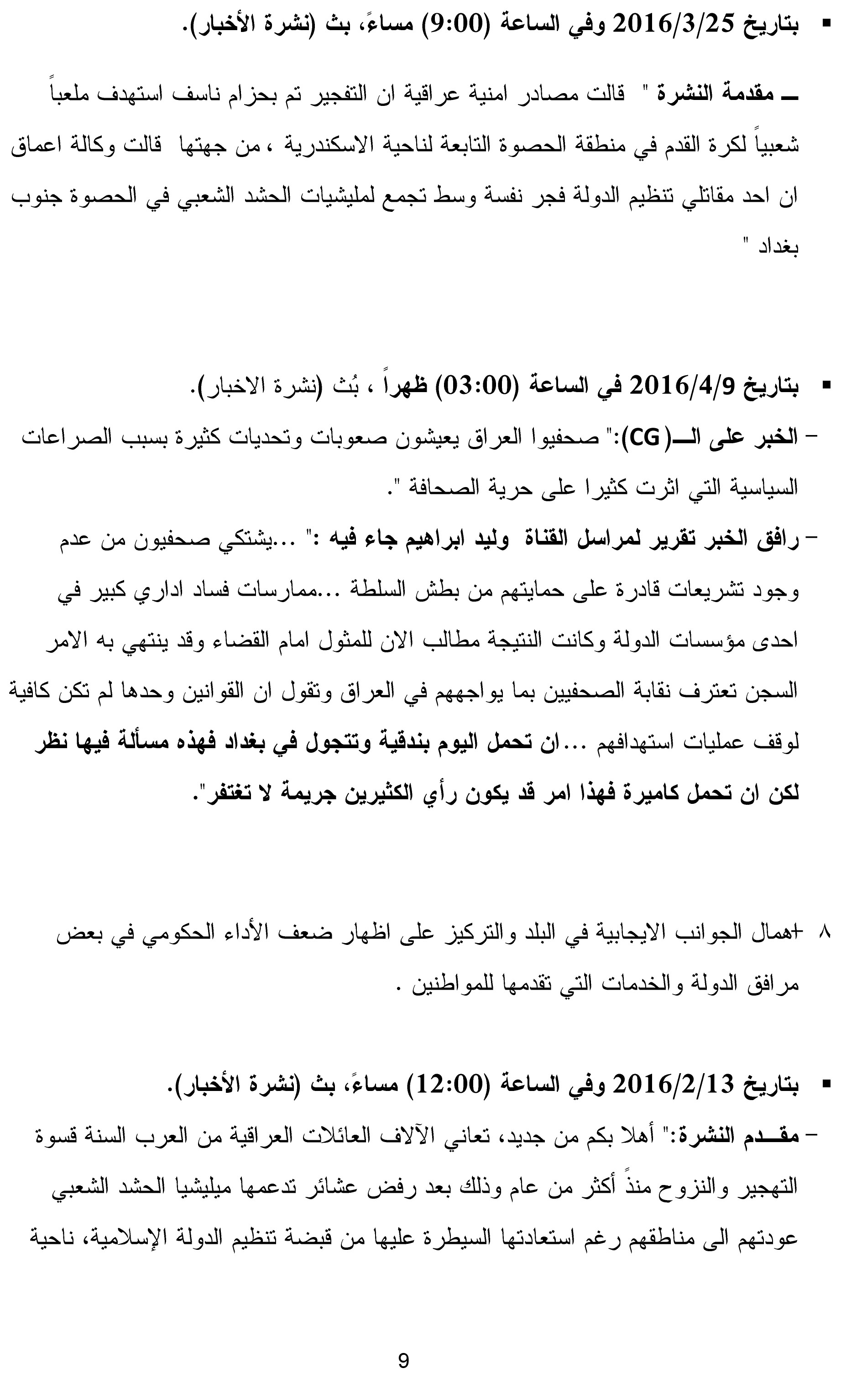 والتأكيد على أسس الحرية الملتزمة بمصلحة البلاد العليا والمجتمع، فكانت قناة الجزيرة الفضائية تعهدت بالالتزام بالمعايير المهنية والمدونة في قواعد البث والإرسال الصادرة من هيئة الإعلام والاتصالات ، إلا إن الملاحظ على القناة عدم التزامها بالتعهد الذي سجل العقد الملزم للقناة ، من خلال تكرار المخالفات رغم المخاطبات والاجتماعات التي جرت ألا إن إدارة القناة لم تستجب .